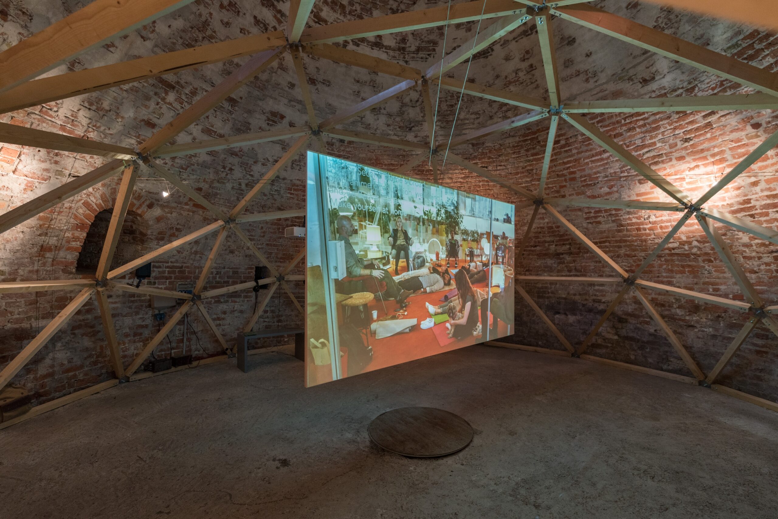 Die Zweikanal-Videoinstallation The Stroker basiert auf einer künstlerischen Intervention in einem Londoner Coworking Space, einer neuen, trendigen Form von Gemeinschaftsbüros. Die Künstlerin erscheint als Wellnessberaterin, angeblich von dem Coworking Space angestellt, um ‚berührende‘ Dienstleistungen am Arbeitsplatz anzubieten. Sie schlendert zwischen den Räumen, begrüßt alle Menschen freundlich und berührt sie leicht im Vorübergehen. Die Reaktionen der Berührten sind sehr unterschiedlich, die meisten sind höflich, andere jedoch zeigen durch ihre Körpersprache ein deutliches Unbehagen. Die feinen Unterschiede in den Gesten offenbaren die stillschweigende Übereinkunft, die regelt, was am Arbeitsplatz als akzeptables Verhalten gilt. Aus der gemeinsamen Verwirrung über das seltsame Verhalten der Unbekannten entstehen neue Verbindungen im Büro. Man tuschelt und gibt ihr einen Namen: The Stroker – Die Streichlerin. Vor der Kulisse gläserner Wände und offener Räume erleben wir eine physische Verhandlung von Grenzen, wo es keine zu geben scheint.