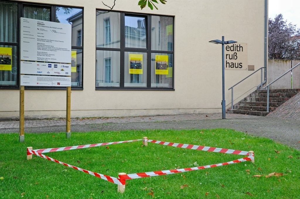 Jana Linke wird während der Ausstellung zu folgenden Terminen ihrer Maschine EMDAS – eine Maschine, die Arbeit schafft, den letzten Schliff geben und jeweils am Ende einer Arbeitsphase, einen Testlauf vor dem Edith-Russ-Haus durchführen: