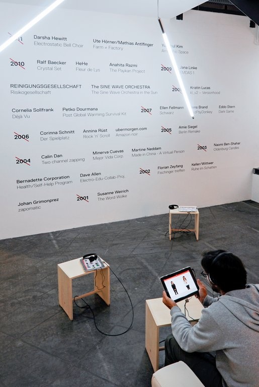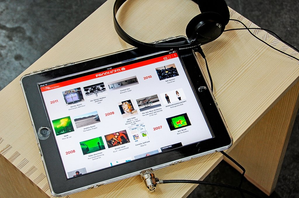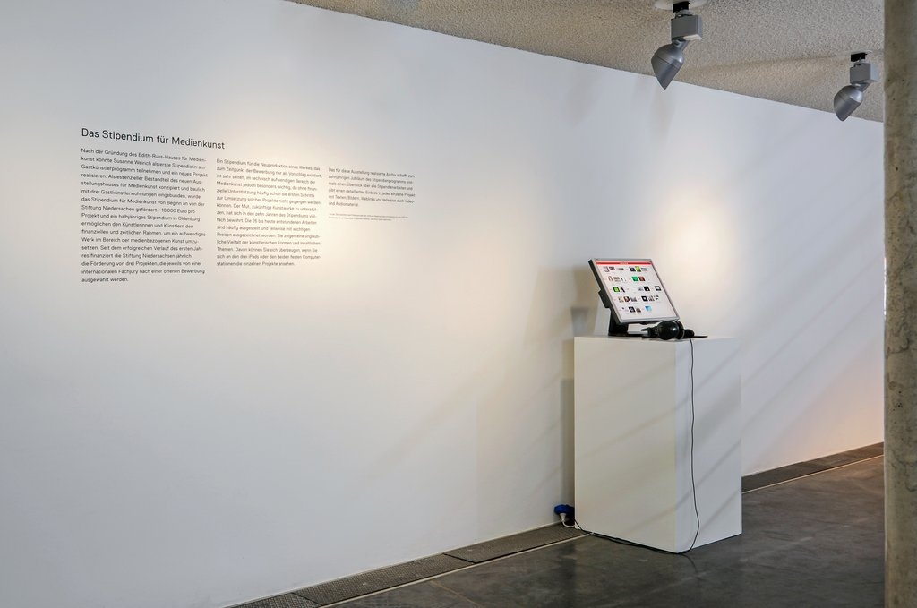Alle 26 Stipendienarbeiten bis 2010 und als Ausblick auch die drei Projekte von 2011 sind in dem computerbasierten Archiv nachzuvollziehen, das für diese Ausstellung realisiert wurde. Auf drei iPads und zwei festen Computerstationen wird im Untergeschoss erstmals ein Überblick über alle Stipendium ermöglicht und anhand von Texten, Bildern, Weblinks und teilweise Video- und Audiomaterial ein detaillierter Einblick in jedes einzelne Projekt gegeben.