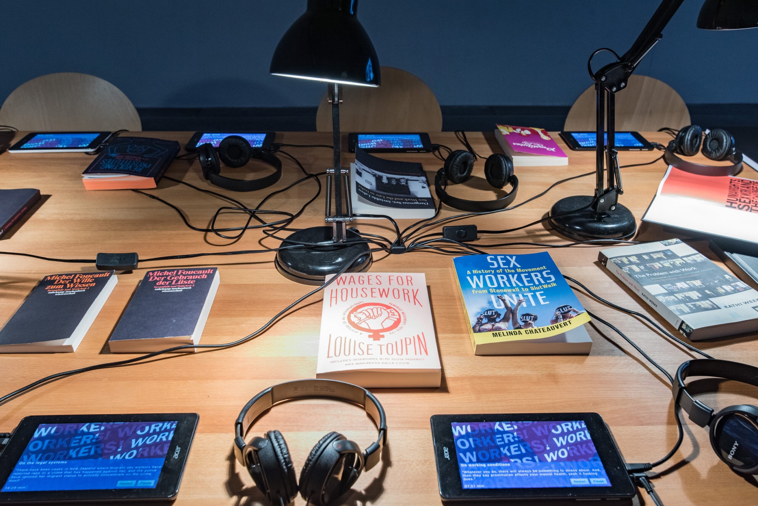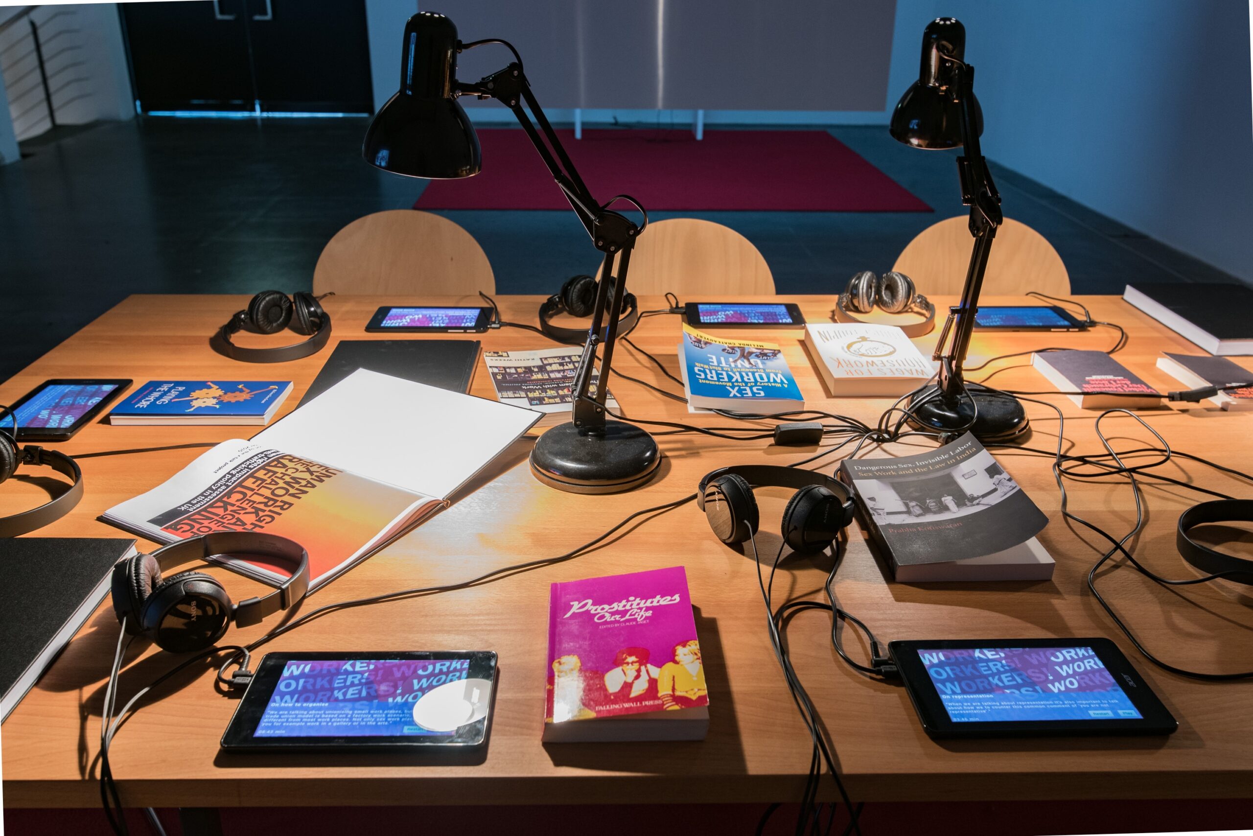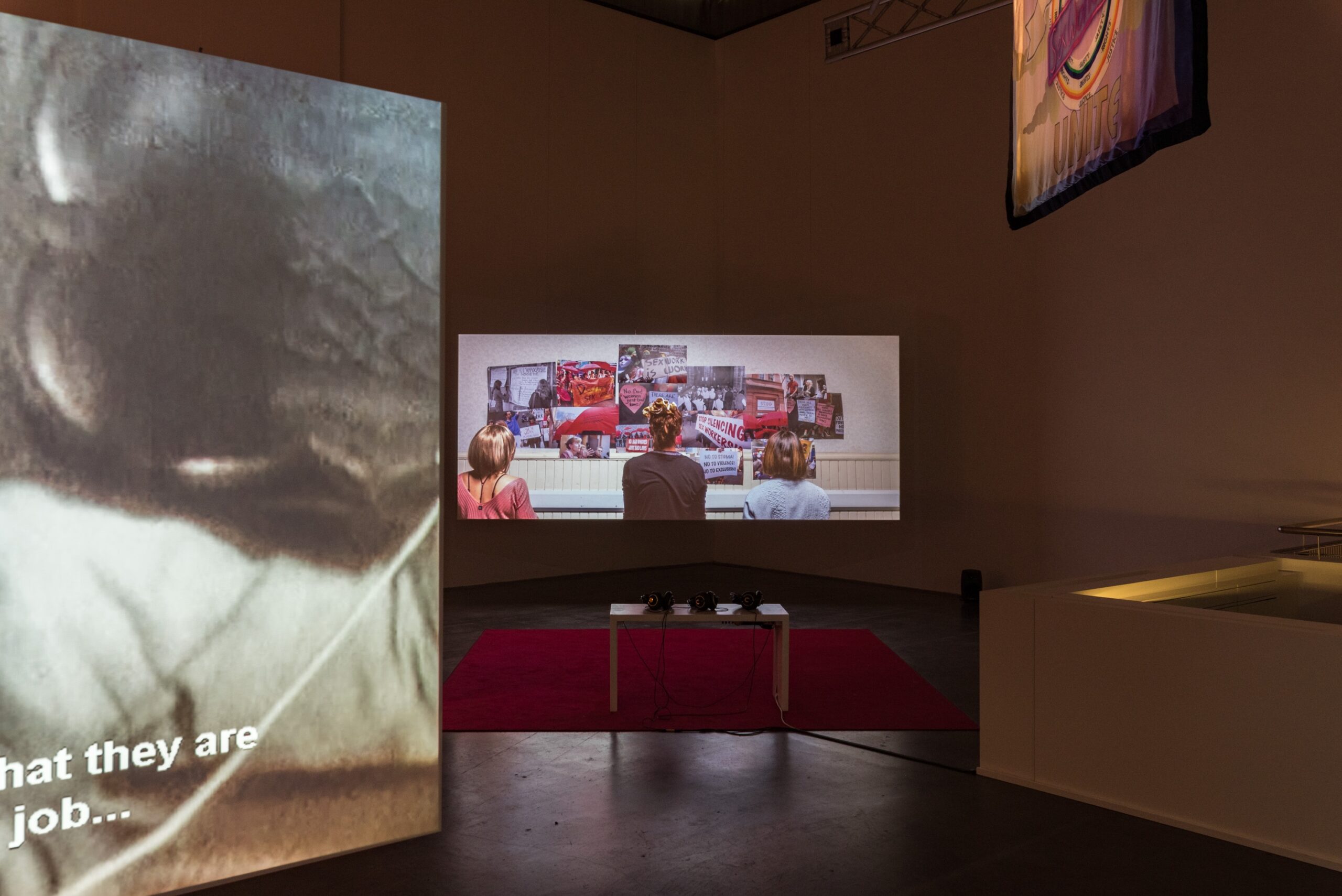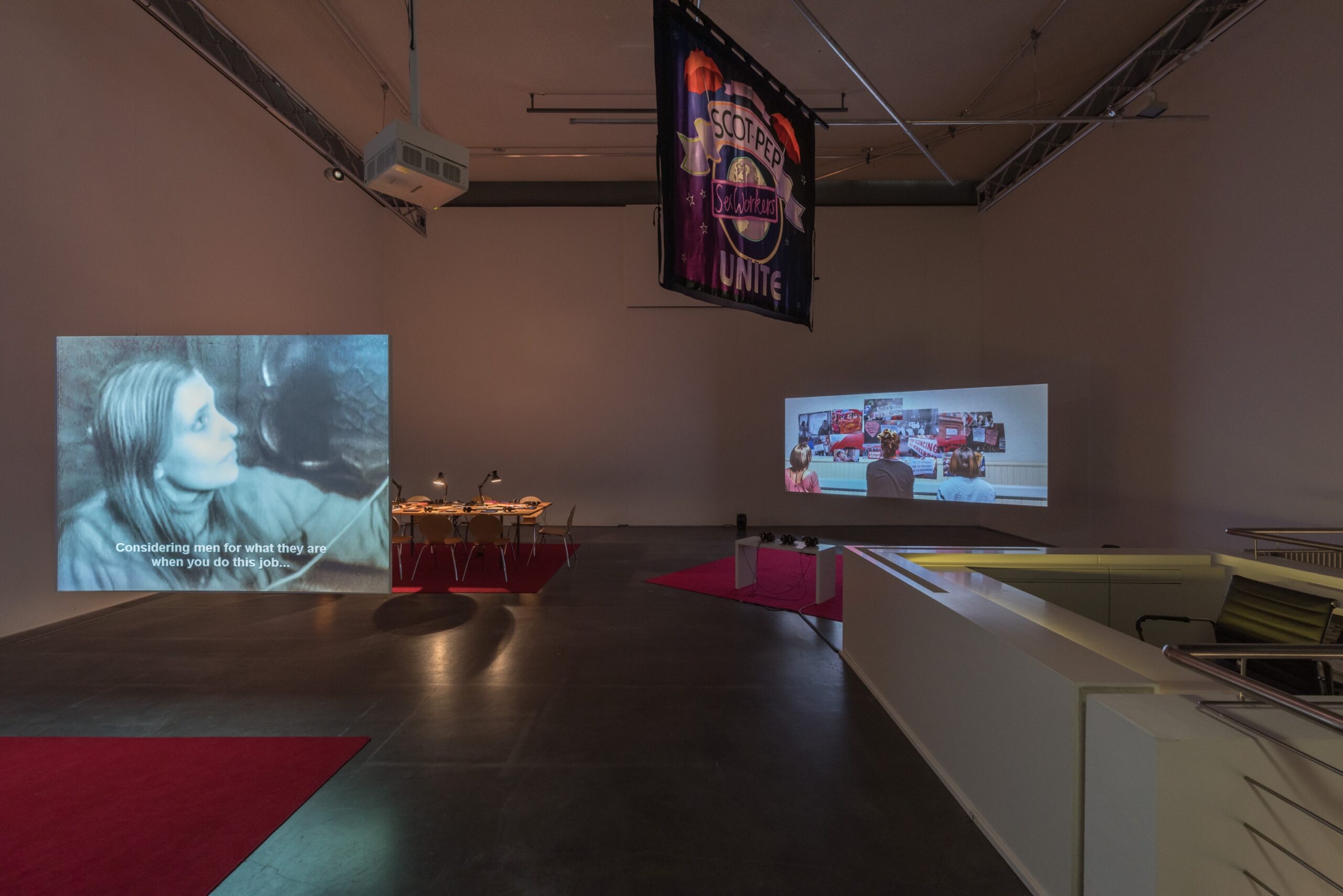 Die schwedische Künstlerin und Filmemacherin Petra Bauer kooperierte für ihr Filmprojekt in den vergangenen drei Jahren mit SCOT-PEP, einer von Sexarbeitenden geleiteten Organisation in Schottland. Das Ergebnis dieser Zusammenarbeit, Workers! (2019), wurde im Haus des Scottish Trade Union Congress gedreht. Dieses Gebäude spielte in den Kämpfen der Arbeiterbewegung für Rechte und politische Repräsentation eine bedeutende Rolle. Während ihrer eintägigen „Besetzung“ dieser Institution entwickelten sich Gespräche über das (Arbeits-)Leben von Sexarbeitenden, in denen ihre eigenen Stimmen im Mittelpunkt standen.