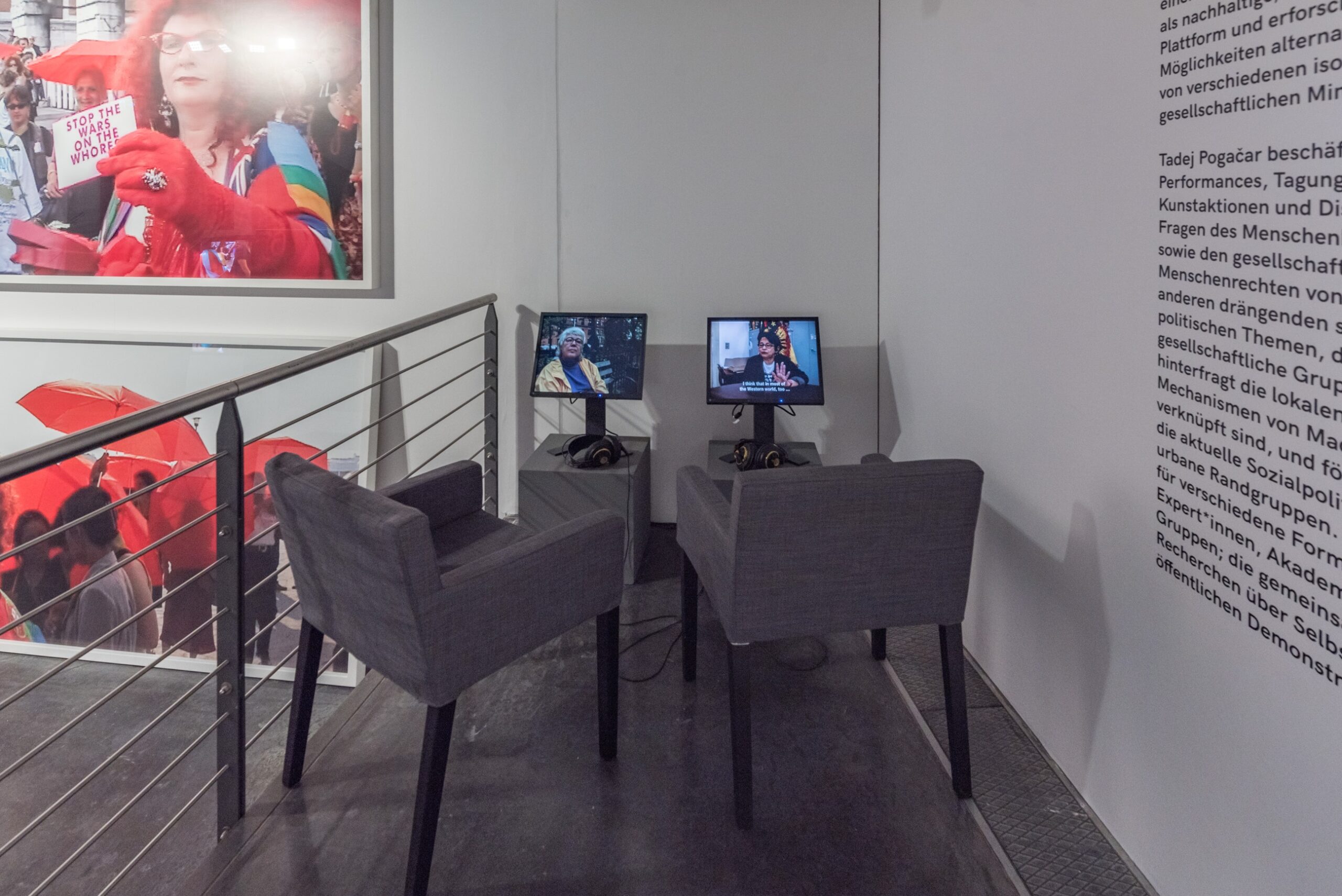 Der Titel der Ausstellung, Red Umbrella Struggles, verweist auf das Symbol der internationalen Bewegung für die Rechte von Sexarbeitenden. Der rote Schirm wurde erstmals 2001 bei einem Performance-Event eingesetzt, das der slowenische Künstler Tadej Pogačar während der 49. Biennale von Venedig organisierte. Der Red Umbrella March war Bestandteil von Pogačars partizipatorischem Projekt CODE:RED (1999–), das die verschiedenen Aspekte von Sexarbeit als eine spezifische Form von Schattenwirtschaft untersucht und diskutiert.