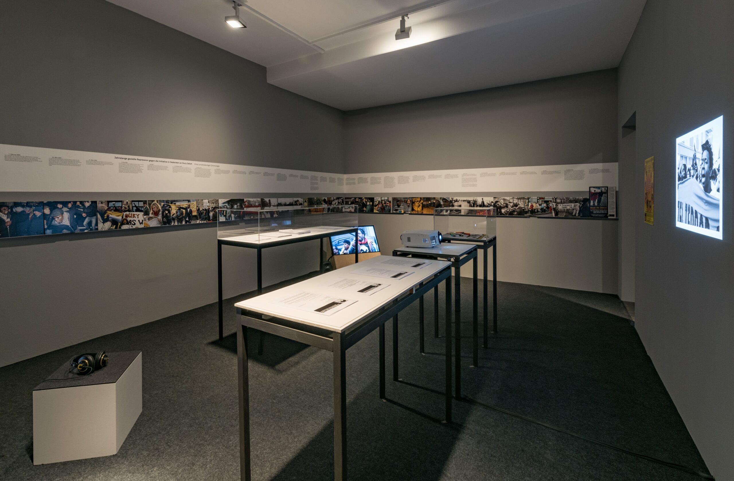 Mit Das Recht verhandeln − Negotiating the Law thematisiert der Videokünstler und Filmemacher Mario Pfeifer in mehreren Installationen rassistische Gewalt.