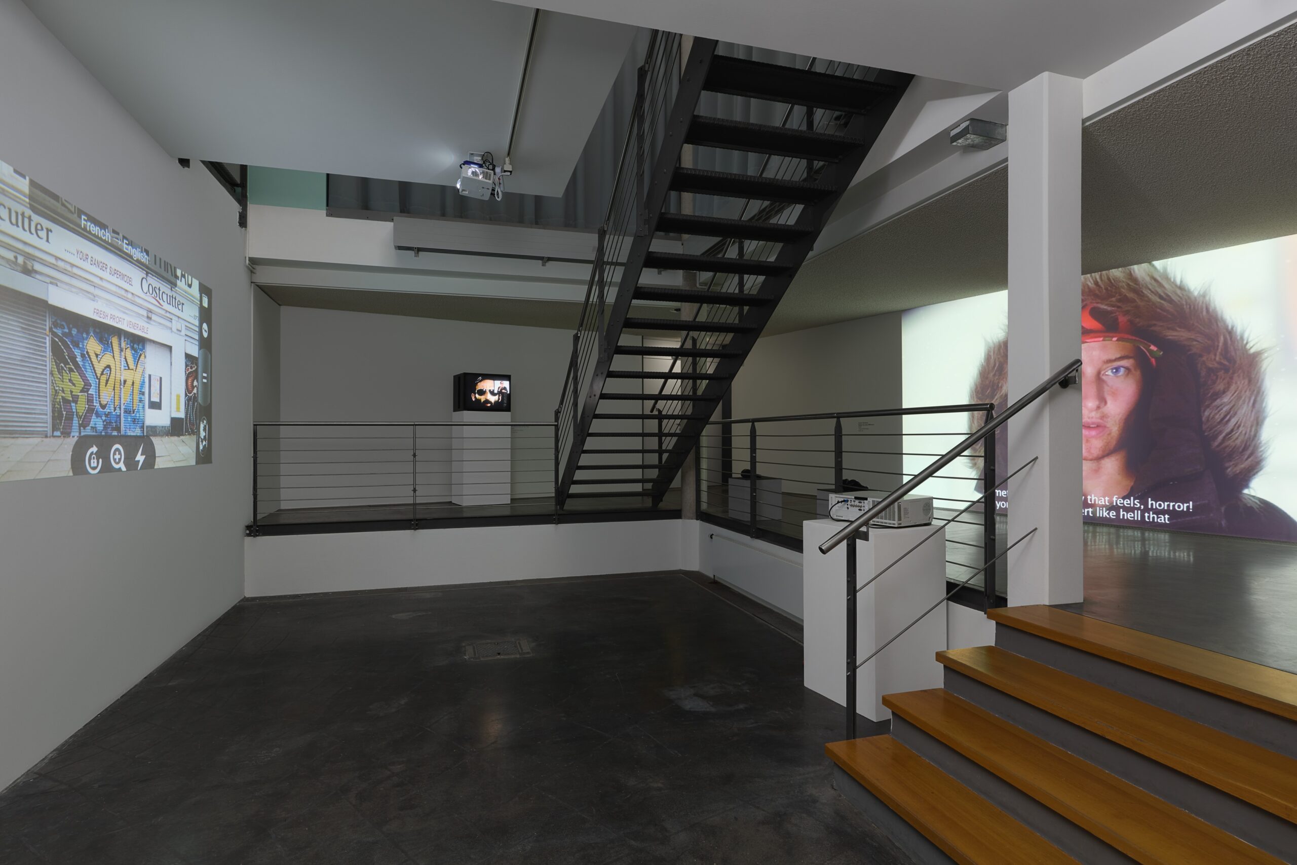 John Smith’s Steve Hates Fish (2015) ridicules one of the newest inventions in language softwares, the automatic translation using artificial intelligence. Filmed directly from the screen of a smartphone using a language translator app that has been told to translate from French into English, the artist deliberately confuses the software by instructing it to interpret the English signage in a busy London shopping street—with hilarious results.
