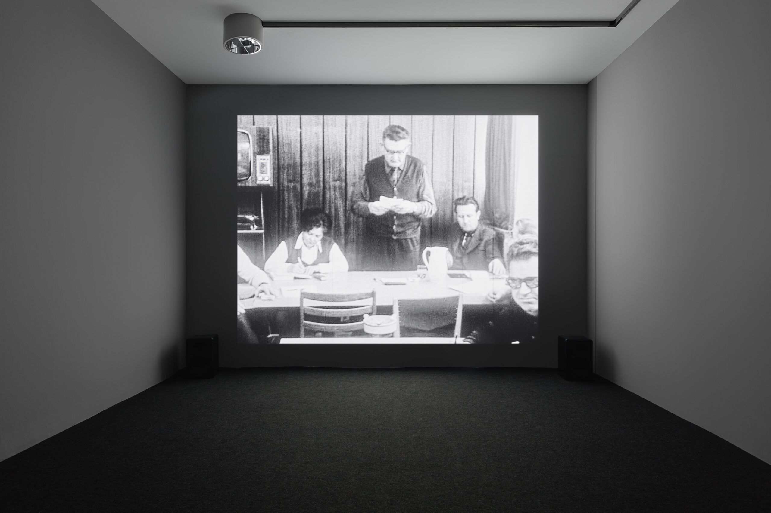Elemér Ragályi’s documentary film Szónokképző iskola (Speakers training course), made in Hungary in 1972, follows a course preparing public speakers to lead funeral ceremonies. The film reveals the contrast between the real human emotions involved in such events and the painful inadequacy of the social celebrations that were hastily invented to replace traditional, mostly religious ceremonies in socialist Hungary. In the context of the exhibition, Ragályi’s film acts as a keystone because of its sensitivity toward the hardships and comical possibilities of rhetorical situations in a complicated and shifting ideological context.