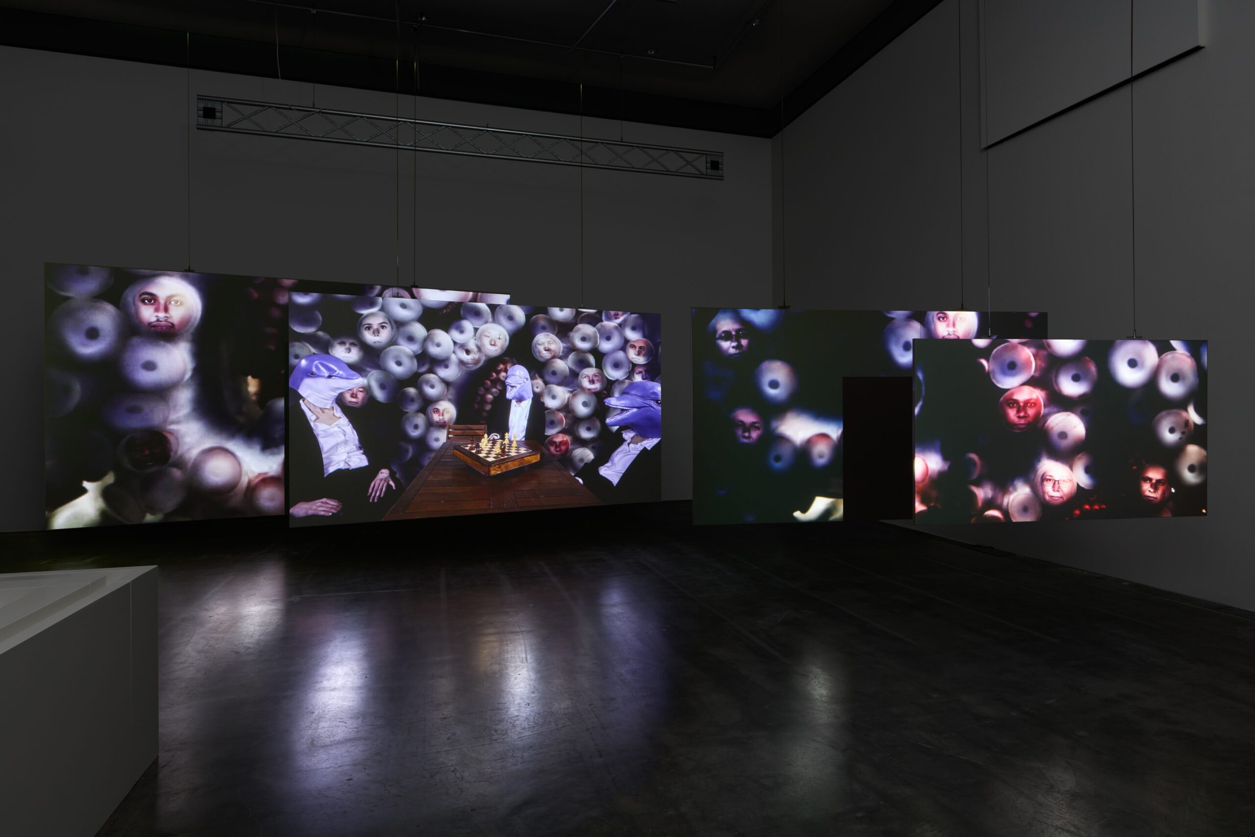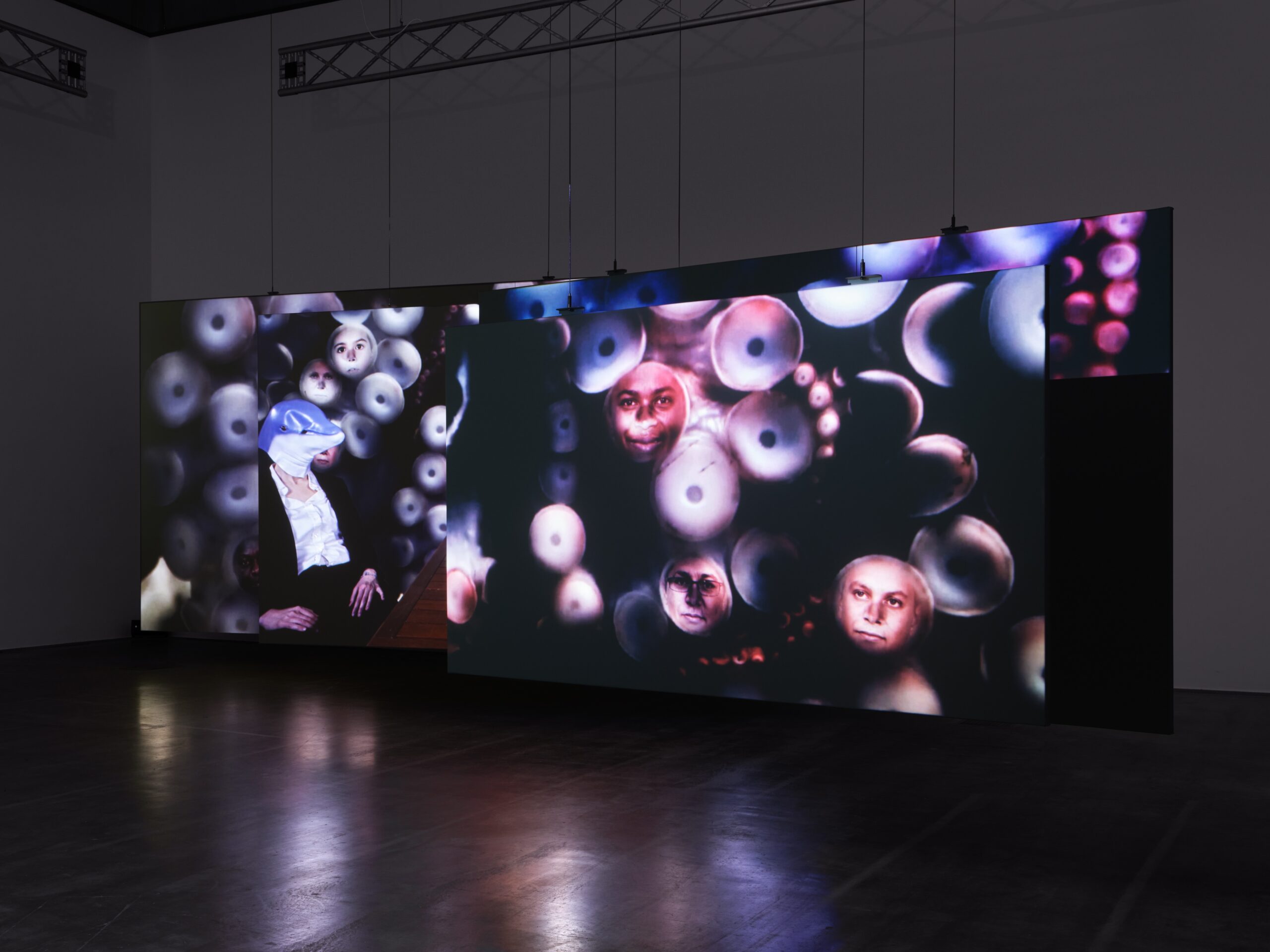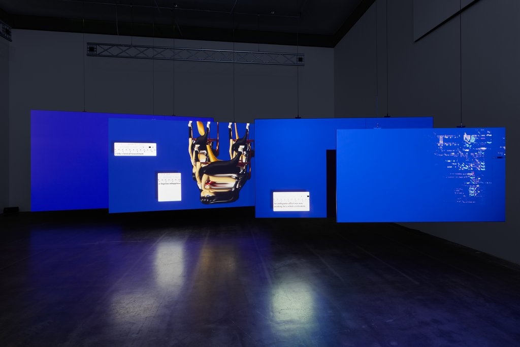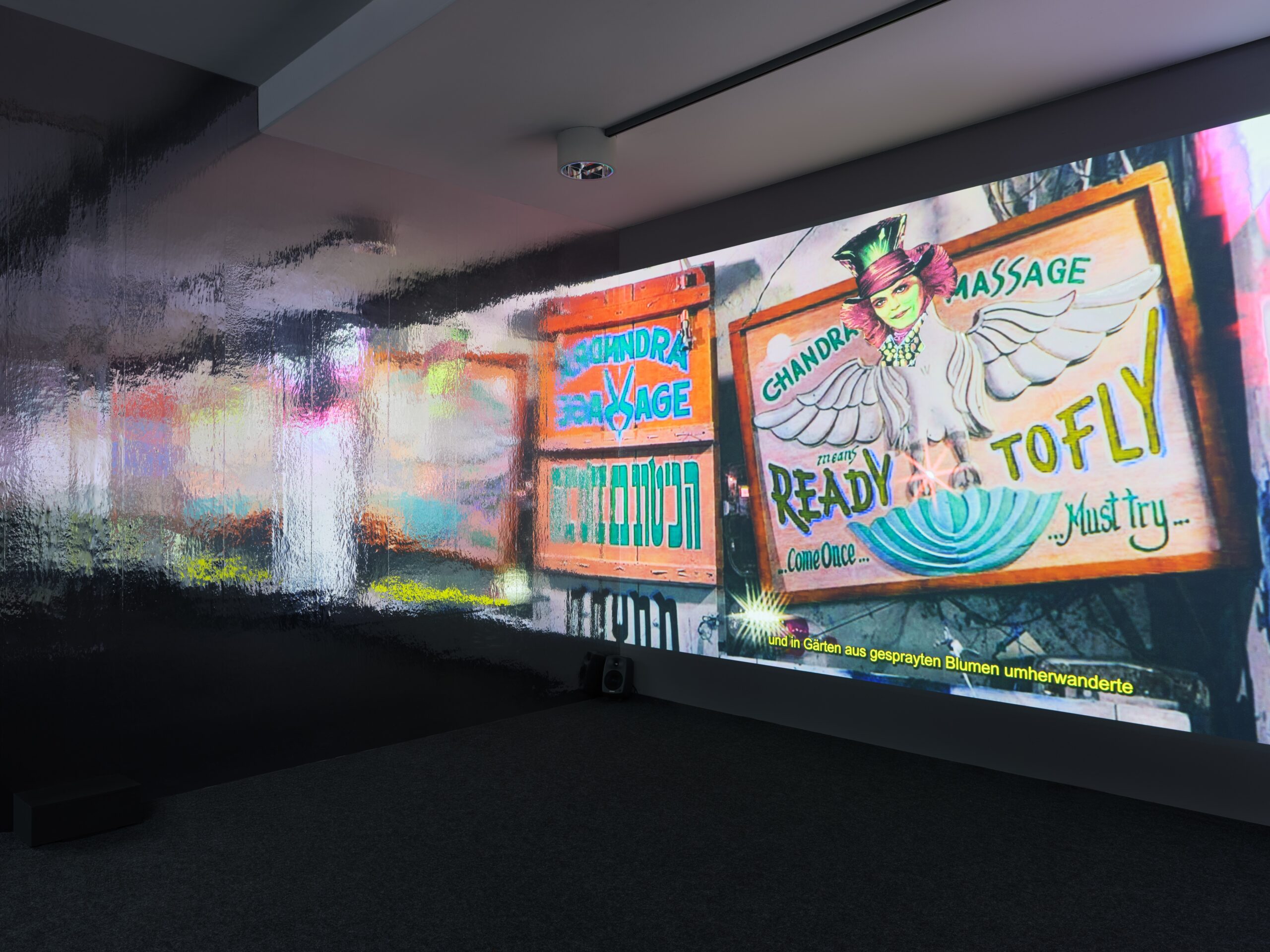 Mochu’s solo exhibition Sentient Picnic brings together a wide range of the artist’s works, with projects exploring mad geologies, niche media tendencies, art collectives, and psychedelic trails. Central to the show is the multichannel video installation GROTESKKBASILISKK! MINERAL MIXTAPE (2022), newly commissioned by the Edith-Russ-Haus for Media Art.