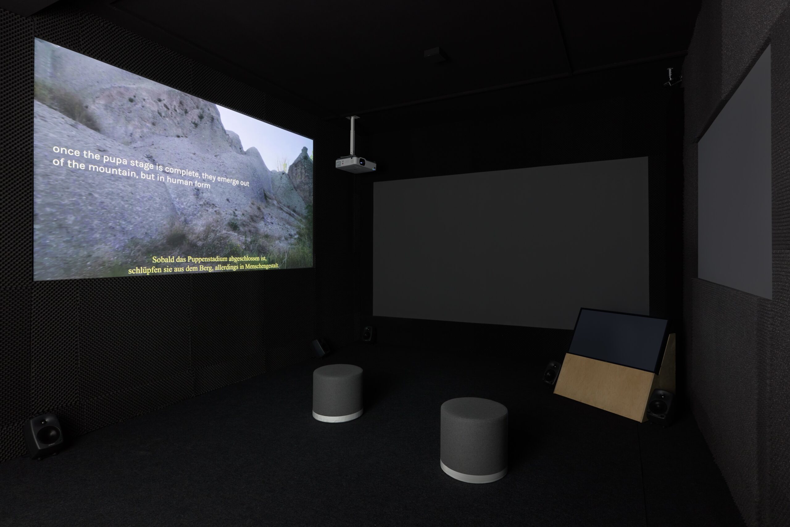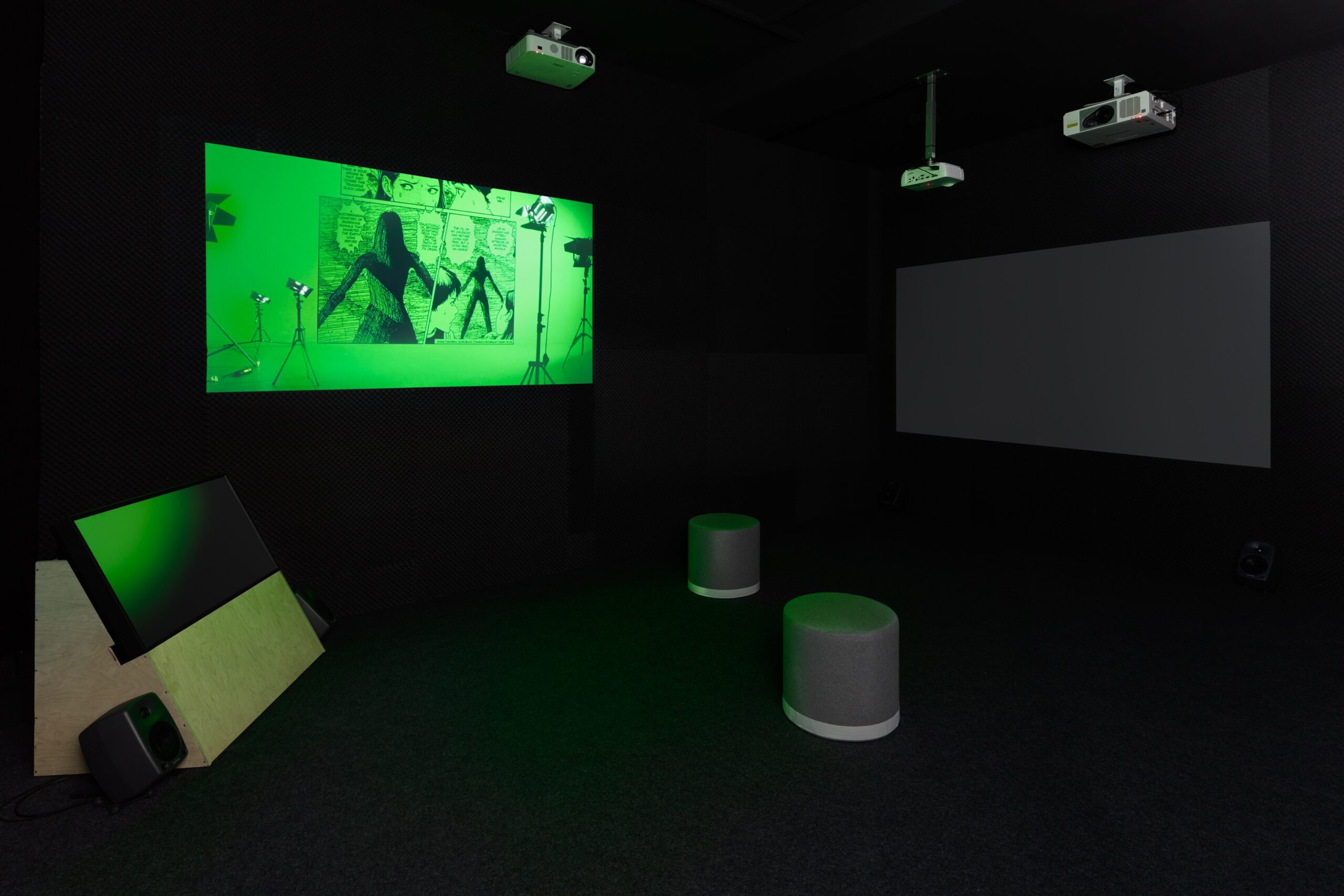 The exhibition also reconfigures, for the first time, Mochu’s video-lecture Toy Volcano (2019) as a multichannel installation. Set in the universe of a forgotten manga, it presents a fan-fiction involving mad geologies, portable holes, and machinic delusions. The narrative follows a tourism department official as they play host to counterfeit theories connecting outsider art, suspect materials, and the physics of cartoons.