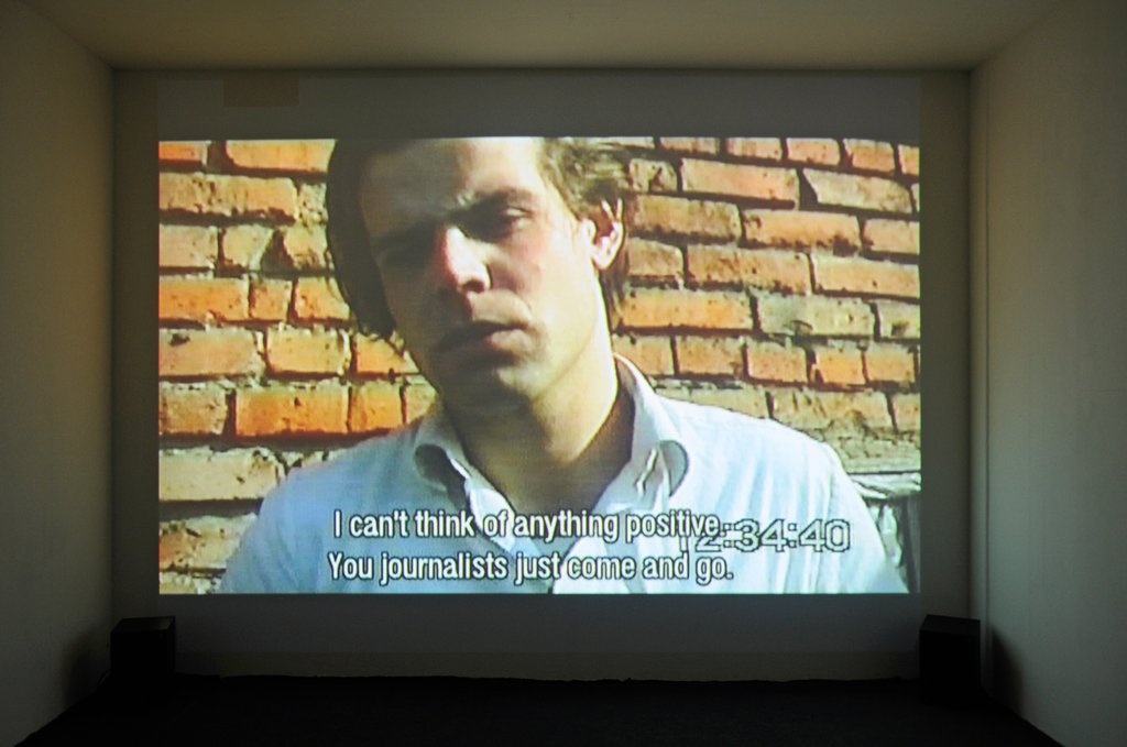 The exhibition follows two separate threads. In the first of these, the artists adopt a radically individualistic approach to war. Renzo Martens turns the camera, amidst a war zone, onto himself. Sarah Vanagt highlights the activities of young people, revealing the mundane aspects of everyday life that blogging culture is obsessed with. Harrell Fletcher makes children renarrate adults´ war memories. With the documentation of her own re-enactments of scenes and sites of the 1940s partisan war Milica Tomic asks whether the appropriation of such events is possible. SWAMP constructed a device that inflicts pain on its wearer with every soldier’s death in Iraq. Dunne & Raby´s (ironic) plush version of the mushroom cloud is conceived to be a therapeutic object for people with special fears of a nuclear war.