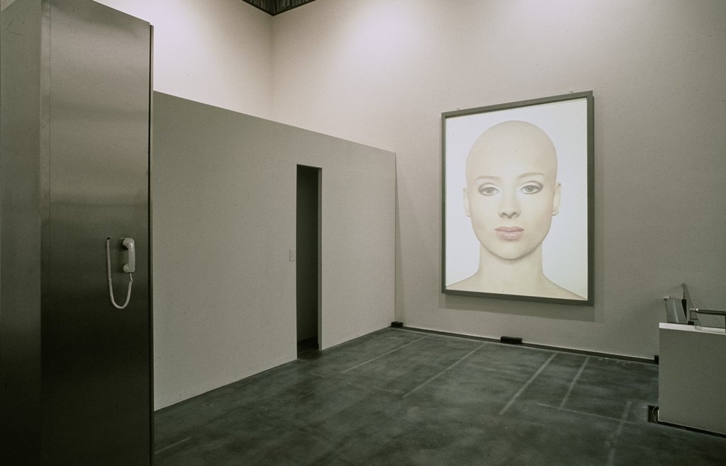 Kirsten Geisler creates virtual portraits of people, shockingly realistic in their proximity and size, fascinating in their flawless beauty and oppressive artificiality. The mirror she holds up to the viewer raises the question of one’s own constructedness, of identity and ‘nature’ of the human being. Stereotypical beauty stands as a metaphor for the old notion of the ideal, perfected body. The fact that the computer-generated portraits can also be addressed, that they enter into an interaction with their counterpart in a reduced way, only increases the horror and the pleasure of irritation. The wink of ‘virtual beauty’ promises much, but answers nothing.