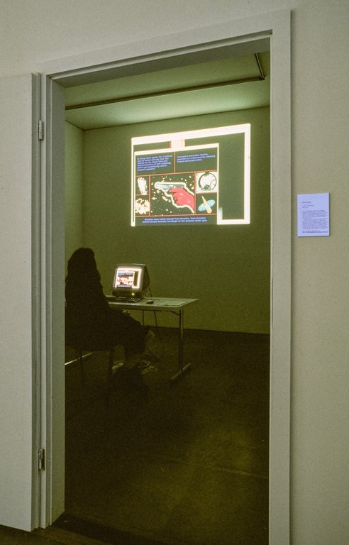 Anna Anders‘ video installations treat the screen as a partition, as an interface between the physically real and the virtual world. ‘Touchscreen’, a video/computer installation that was awarded the First Marl Video Installation Prize, is an interactive piece that enables visitors to make contact with the reality existing behind it by touching the screen and thus provoking reactions from the virtual inhabitants. Co-author: Klaus Gasteier.